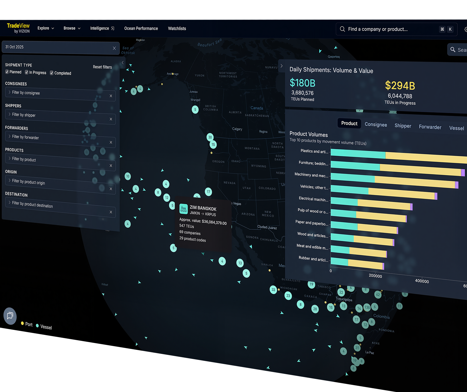 Vizion products enable companies to track and monitor individual shipping containers throughout their journey, with new capabilities that monitor 57% of global trade. The TradeView platform offers comprehensive global trade intelligence, allowing users to monitor and analyze over $7.5 trillion in goods from 130+ data sources, helping to identify risks and enhance supply chain resilience.