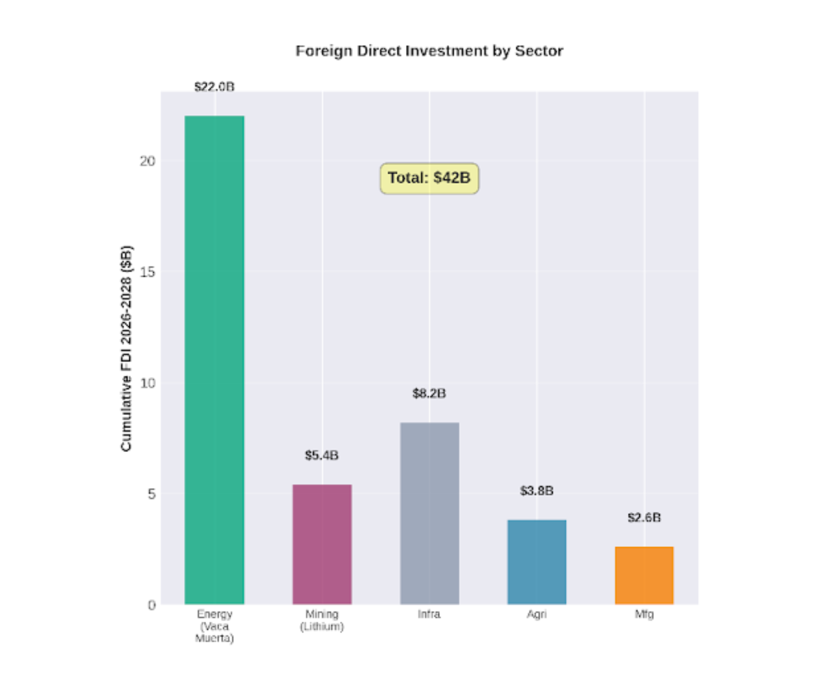 Investment projections reveal the sectoral priorities driving Argentina's transformation. Energy sector investments, primarily in the Vaca Muerta shale formation, are expected to total $22 billion over the 2026-2028 period. Mining investments, concentrated in lithium extraction and processing, should reach $5.4 billion, while infrastructure modernization will attract approximately $8.2 billion. Total cumulative foreign direct investment for the three-year period is projected at $42 billion, representing a dramatic increase from historical levels.