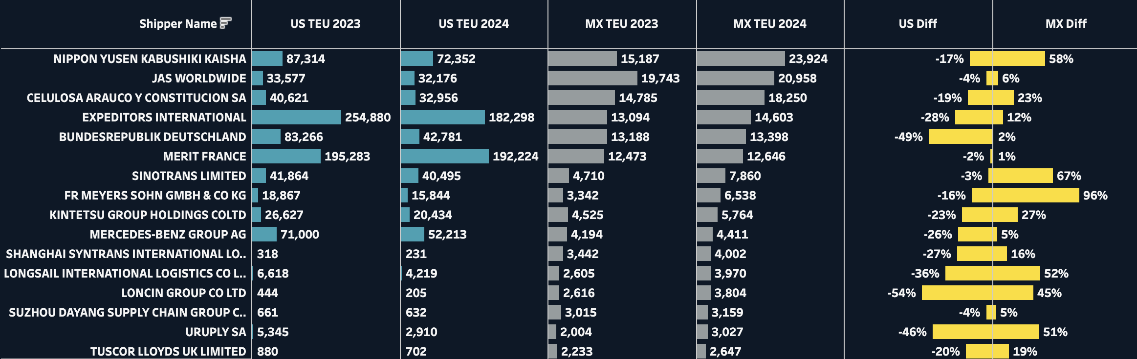 Examining shifts at the shipper level reveals which major exporters are driving this near-shoring movement.
